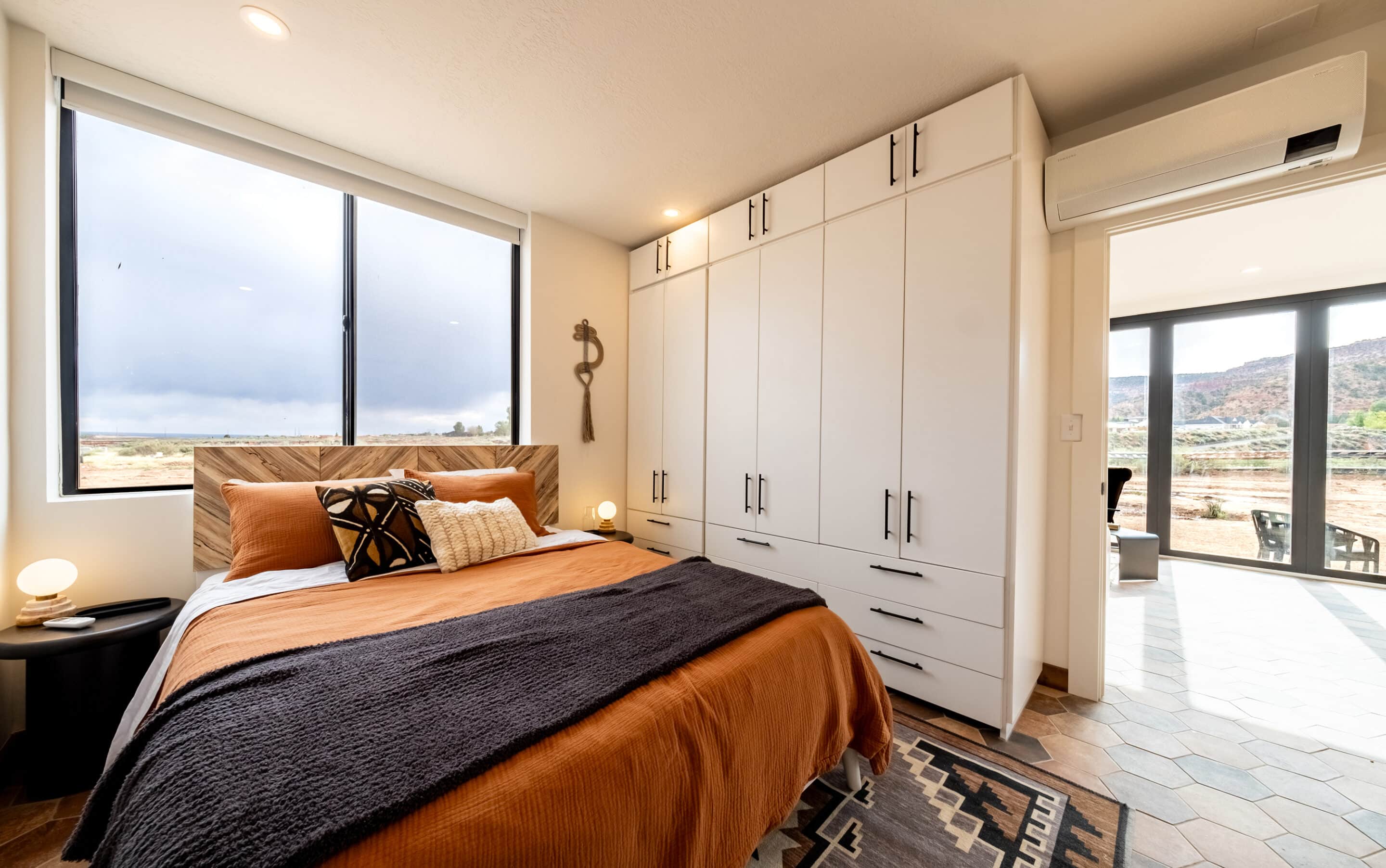 Here, we focus on the grounding element. The installation of hardwood, carpet, and tile adds warmth and texture to each room.